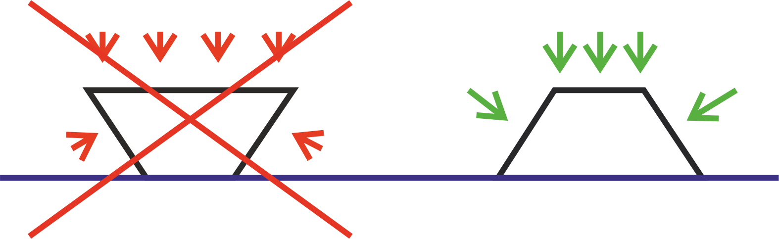 -Certaines formes rendront compliqué le démoulage. La machine fonctionnant par aspiration, des angles allant vers l’extérieur de la forme principale sont à éviter (cf figure 1).